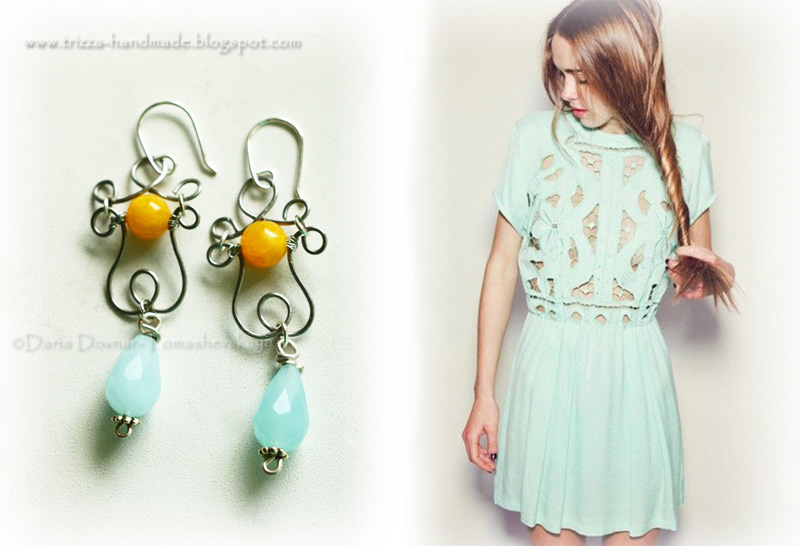 Новые серьги в нежных пастельных тонах, красивая огранка голубого камня, как морская гладь, а сверху желтый камушек-солнце.